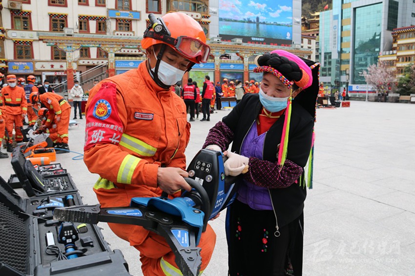 在活動現(xiàn)場,州森林消防支隊康定中隊的隊員手把手教市民沙爾使用森林消防器材,在親身體驗后,沙爾更感消防人員日常工作的不易,她希望市民們都能增強防范森林草原火災(zāi)的意識和覺悟,共同守護家鄉(xiāng)的綠水青山。