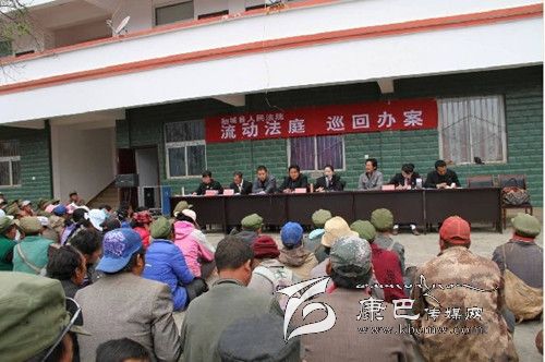 香格里拉人民法庭坐落于距“稻城亞丁國家級(jí)風(fēng)景區(qū)”僅30公里的稻城縣香格里拉鎮(zhèn)。該法庭轄區(qū)為貢嶺、東義兩個(gè)片區(qū)以及香格里拉鎮(zhèn)的14個(gè)行政村、1個(gè)社區(qū)。轄區(qū)面積達(dá)4000余平方公里。轄區(qū)內(nèi)以山區(qū)為主,道路崎嶇、交通不便,海撥、地域跨度大,最大的落差近3000米,距轄區(qū)內(nèi)最遠(yuǎn)的鄉(xiāng)鎮(zhèn)100公里。