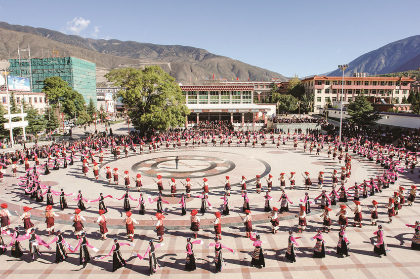 甘孜州有藏、漢、彝、羌、納西、回等20多個民族,其中藏族人口占81.5%。從古至今,甘孜大地各族群眾交往交流交融,各族群眾“同唱一首歌、同跳一支舞、同吃一桌飯”成為習以為常的生活場景,人心凝聚、團結奮進的精神紐帶更加牢固。