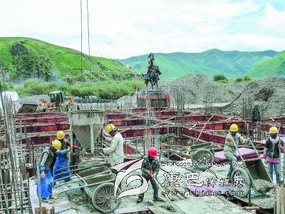 7月的德格縣阿須鄉(xiāng),時逢草原上最美的季節(jié),藍(lán)天白云、燦爛的陽光、綠色的草地上開滿了各色的鮮花,在格薩爾紀(jì)念堂旁邊,在格薩爾銅像腳下,是一幅忙碌的建設(shè)景象,在機器的轟鳴聲里,工人們正忙著大樓基礎(chǔ)層的建設(shè),這記者來到是德格縣格薩爾展覽館的建設(shè)工地時看到的景象。
