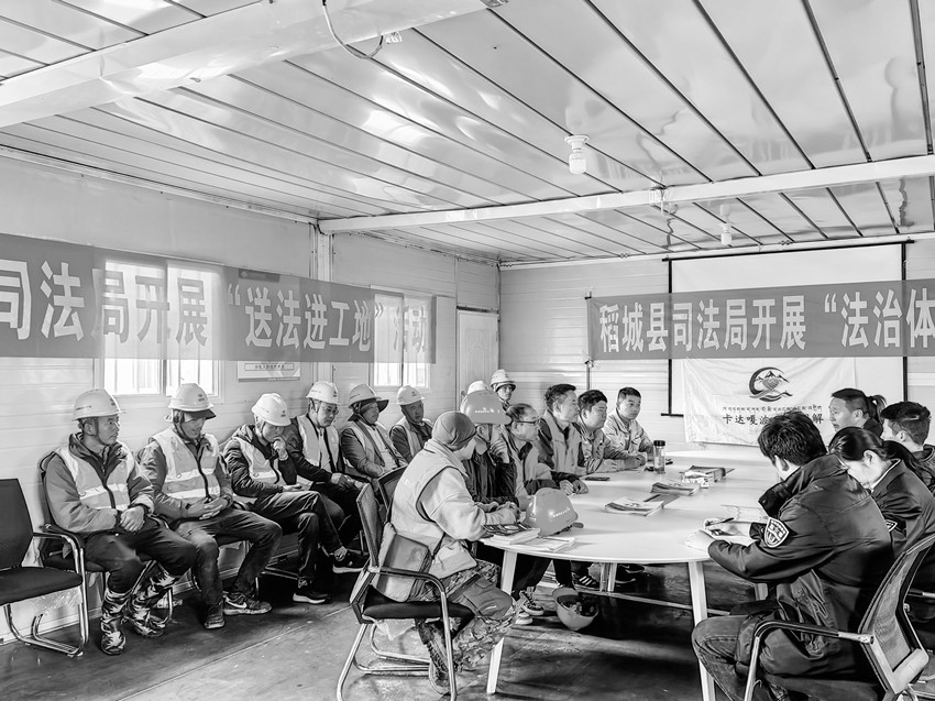 圖為稻城縣司法局深入海子山工地開展法治宣講活動。