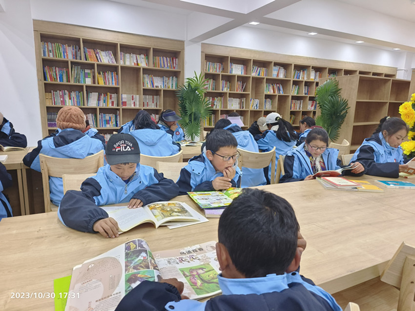 石渠縣學(xué)生在新的圖書(shū)館看書(shū)。