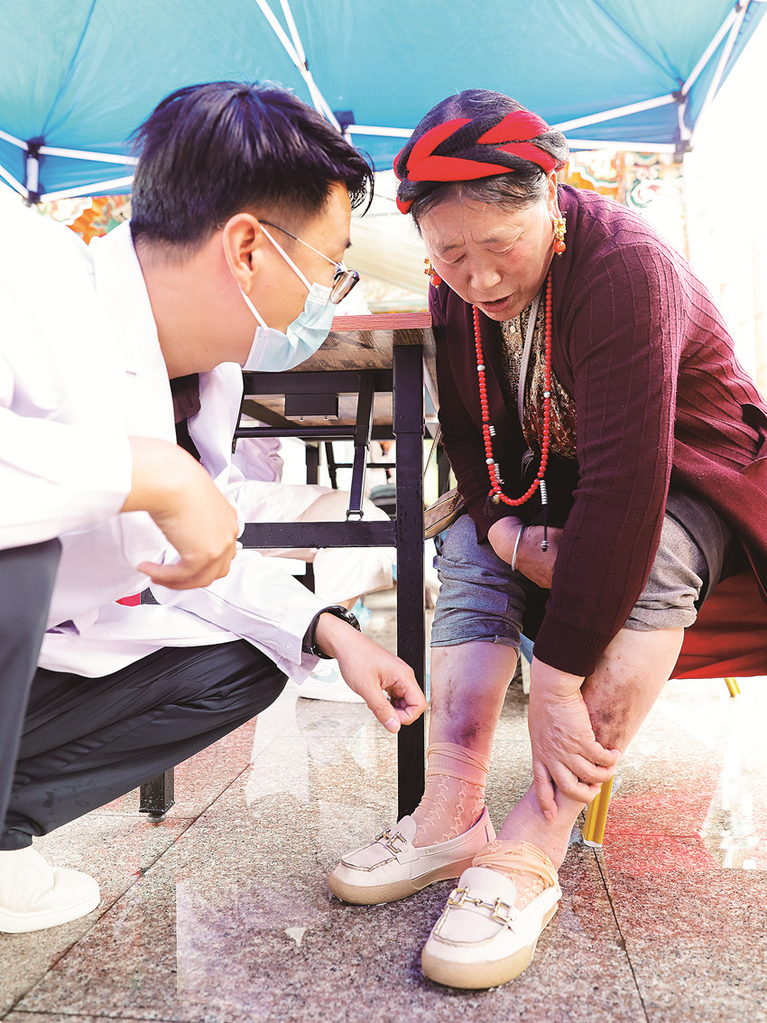得知此次義診有許多知名專(zhuān)家組成的“王牌團(tuán)隊(duì)”,許多患者慕名而來(lái)。從一開(kāi)始的緊張擔(dān)憂到就診后的安心,患者們一聲聲“門(mén)巴,嘎真切!”表達(dá)著他們對(duì)專(zhuān)家們的由衷感激。