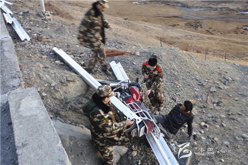 11月29日,甘孜州消防官兵在抗震救災途中,發(fā)現一名騎摩托車的青年摔倒在5米高的路基下,右腿被死死被壓住不能動彈。據了解,消防官兵結束道孚縣中古村安置點消防安全檢查,準備返回祖慶學校安置點,行駛至塔公鄉(xiāng)海拔4000米左右處,發(fā)現事發(fā)摩托車就在消防官兵所乘車輛前10米處。駕駛人員是一名藏族青年,在他發(fā)動摩托車時,轉眼就摔倒掉下公路路基。