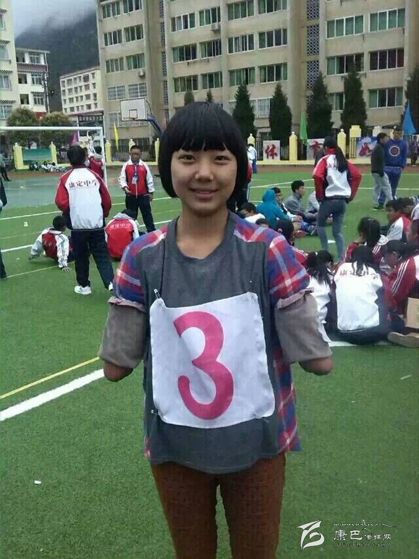 在康定中學(xué)校園里,你會(huì)邂逅這樣一位女孩:臉上永遠(yuǎn)燦爛著陽(yáng)光般的微笑,雙眼永遠(yuǎn)閃爍著自信樂觀的光芒。教室里,她聚精會(huì)神地聽課;圖書館里,她專心致志地讀書;操場(chǎng)上,她身輕如燕地奔跑;寢室里,她開心爽朗地和同學(xué)交流??赡阕屑?xì)一看,她竟然沒有雙臂,就像折翼的天使。她就是該校高2016屆8班學(xué)生,羌族女孩許方燕。行走在高原的風(fēng)中,她是一幀讓每一個(gè)人內(nèi)心泛起感動(dòng)漣漪的美麗風(fēng)景……