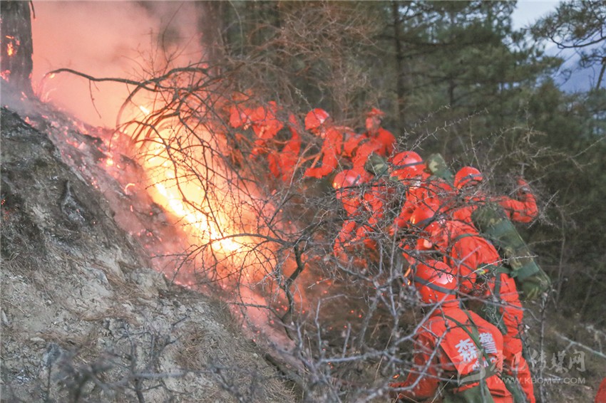 火災(zāi)發(fā)生后,武警甘孜森林支隊(duì)道孚大隊(duì)40名官兵迅速趕赴現(xiàn)場(chǎng)展開滅火工作。高原的夜晚氣溫雖然降至-14℃,但凜冽的寒風(fēng)卻讓林火肆意蔓延,撲火官兵跟著火頭一路追擊,力阻火場(chǎng)面積擴(kuò)大。19日凌晨,滅火官兵抓住清晨風(fēng)力小、氣溫低的有利條件,向火魔發(fā)起進(jìn)攻,殲火頭、撲余火、滅煙點(diǎn)、清火線,2小時(shí)30分鐘后完成了南線滅火作戰(zhàn)任務(wù)。隨后,道孚森林大隊(duì)官兵兵分兩路幫助地方專業(yè)滅火隊(duì)和撲火群眾清理煙點(diǎn)、站桿倒木。一路采取接力方式,采用水箱將山脊一處水源不間斷傳遞至火場(chǎng)一線,清理煙點(diǎn);另一路運(yùn)用油鋸、砍刀、組合工具對(duì)任務(wù)區(qū)戰(zhàn)桿倒木進(jìn)行清理。