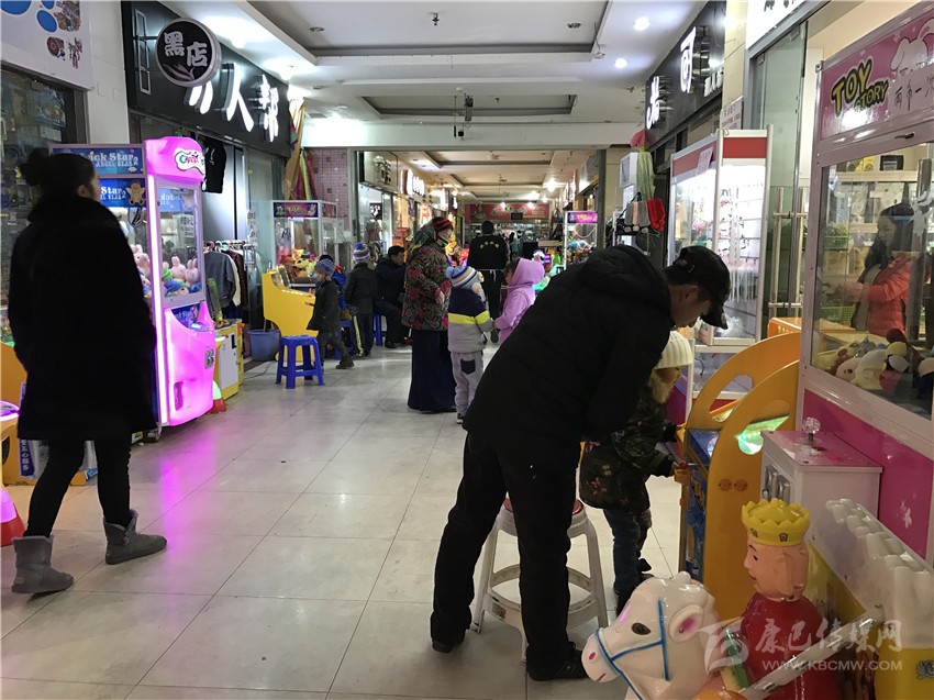 整個(gè)情歌廣場(chǎng)地下商城巷道內(nèi)擺滿了各式游戲機(jī)、搖搖車。