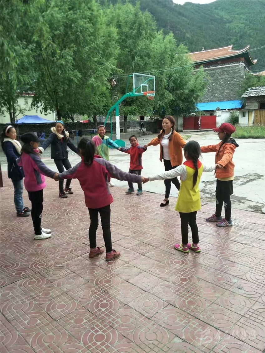 扎西拉姆帶領(lǐng)同學(xué)們做游戲。