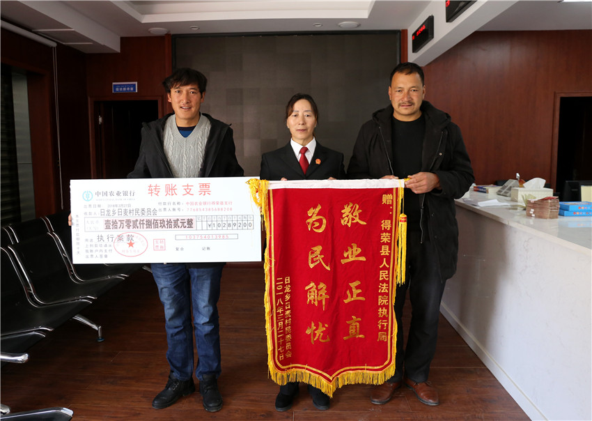在執(zhí)行款發(fā)放現(xiàn)場,得榮法院執(zhí)行局局長小娜錯法官正逐一核對當(dāng)事人信息,辦理領(lǐng)款手續(xù),她向筆者介紹說:“去年開始,我們在共擬定出了29個基本解決執(zhí)行難的工作任務(wù),形成了7條具體措施,對所屬的11件執(zhí)行難案每件形成專項行動方案,并將‘一案一辦法’的基本原則落實到了后續(xù)的23件案件執(zhí)行當(dāng)中,取得了良好的執(zhí)行效果,今后我們將持續(xù)深入執(zhí)行難專項行動,全面深入落實依法治理,切實保護(hù)人民群眾的合法權(quán)益,努力讓人民群眾在每一件司法案件中都感受到公平正義,感受到更多的幸福感和安全感?!?/p>