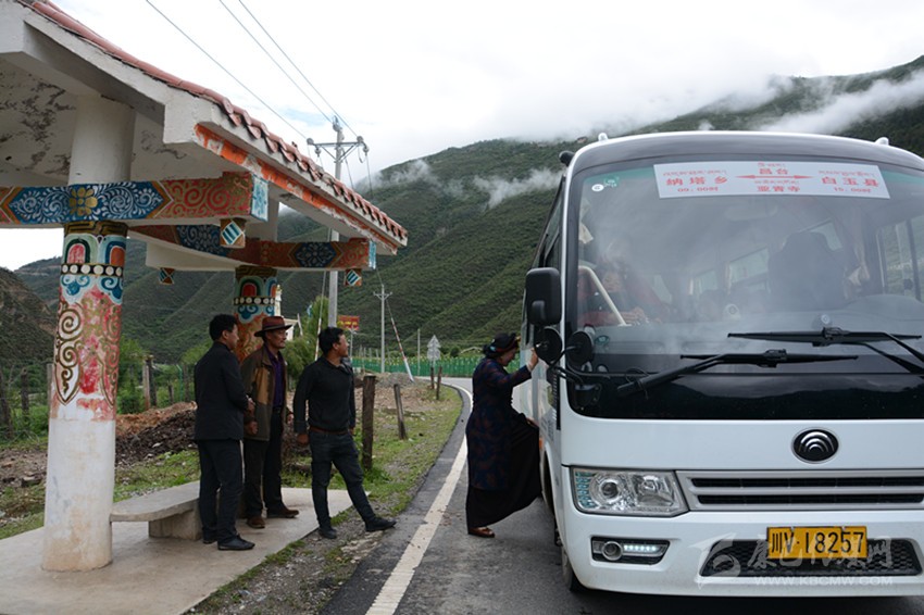 “加洛,快點喲,公交車要開了?!?/span>6月25日8時56分,在白玉縣農(nóng)村公交車納塔始發(fā)點,記者看到坐上農(nóng)村公交車的白玉縣納塔鄉(xiāng)納塔村村民俄洛招呼著鄰居加洛。
