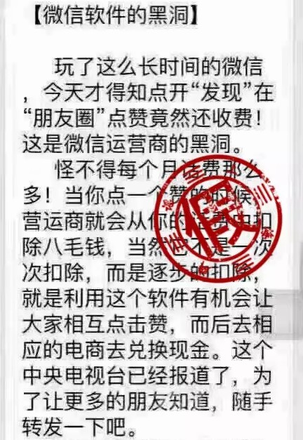 傳言一:微信朋友圈點(diǎn)贊要收費(fèi)
