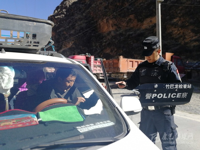 竹巴籠派出所(檢查站)民警對(duì)過往車輛例行檢查。