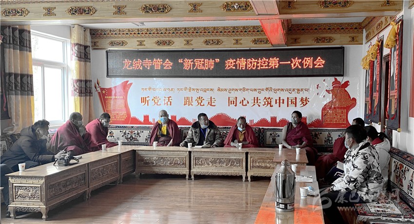 2019年、2020年冬春之交,新冠肺炎疫情侵襲中華大地。1月24日,得榮縣全力出擊、全面抗疫,作為寺管會主任的洛絨益西切實(shí)擔(dān)負(fù)起龍絨寺的疫情防控工作,召集寺管會所有干部和民管會成員部署防控工作,全面打響了龍絨寺疫情防控阻擊戰(zhàn)。