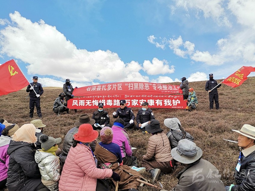 “阿媽?zhuān)裉炀焓迨宓较x(chóng)草山來(lái)給我們講毒品知識(shí)和危害,聽(tīng)了過(guò)后我感覺(jué)毒品這東西太可怕了,我們一定要遠(yuǎn)離它?!薄昂煤⒆?,毒害猛于虎,人一旦吸毒就算有金山銀山也會(huì)被搬空,你要?jiǎng)訂T小伙伴們都來(lái)學(xué)習(xí)毒品知識(shí)和危害,豐富自己、武裝自己,大家共同抵御毒品侵害?!倍宋绻?jié)假期間,洛絨一家在海拔4000米的蟲(chóng)草山上參與了一場(chǎng)特別的宣傳教育活動(dòng)。