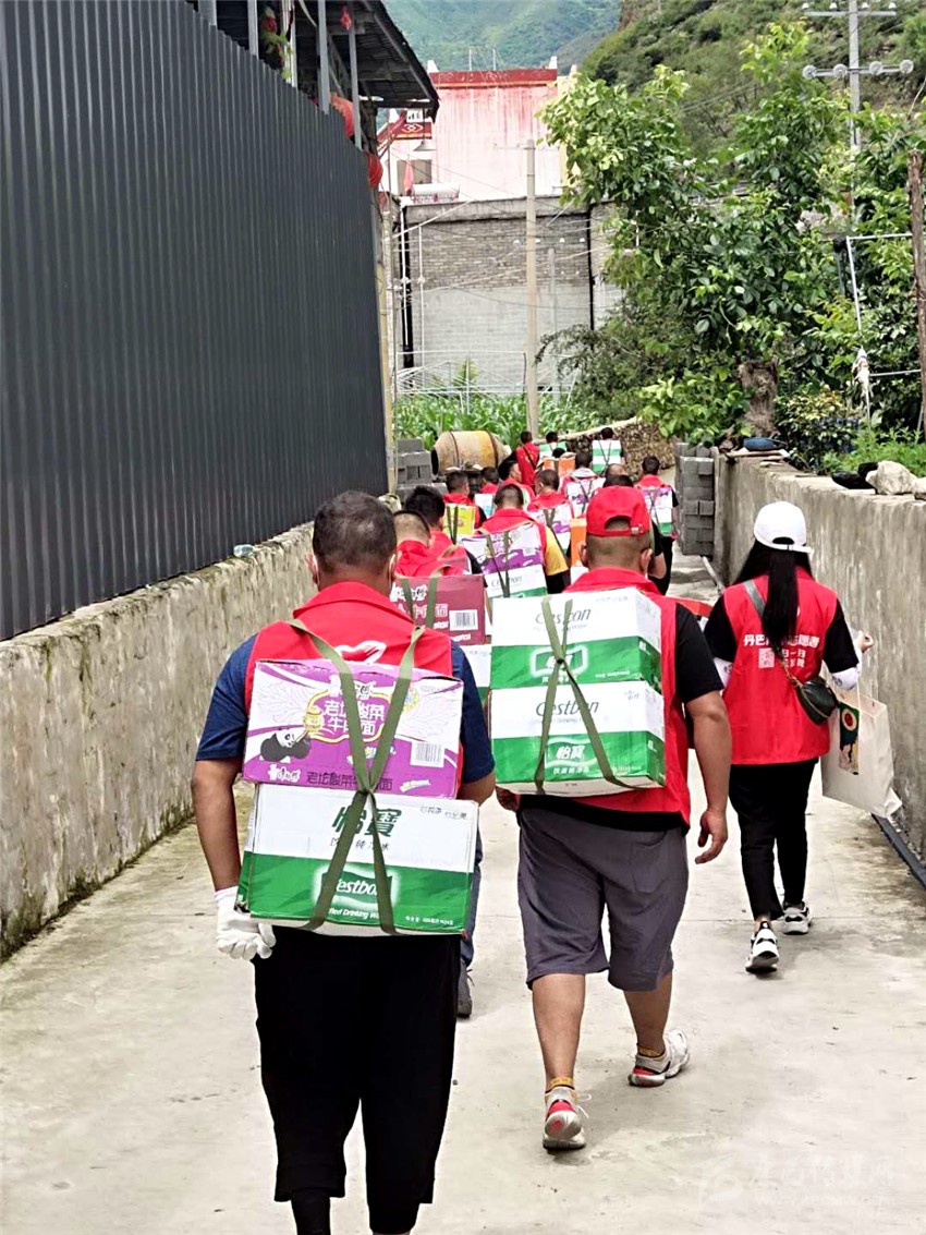我州青年志愿者搬運應急物資。