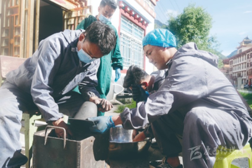 在采訪拍攝時(shí),我們有幸目睹珍貴藏藥“佐塔”的黃金鍛造工藝。只見三位藏醫(yī)將黃金切成片后進(jìn)行毒素祛除,然后把各種藥材用白布包扎后進(jìn)行煅燒。德格縣藏醫(yī)院副院長(zhǎng)伍金丹增告訴筆者:“佐塔的黃金煅燒需要8小時(shí)左右,而這只是整個(gè)鍛造工藝中的一部分。佐塔的珍貴在于其傳統(tǒng)的炮制方法,是一種用水銀洗練‘八珍’與‘八鐵’而制成的特殊藥劑。有人說因?yàn)橛辛恕羲陀辛恕是唷?,而有了‘仁青’就有了藏藥的靈魂?!蹦壳霸诘赂窨h藏醫(yī)院,已經(jīng)有3名藏醫(yī)骨干熟練的掌握了此項(xiàng)技術(shù),這對(duì)藏醫(yī)技術(shù)的傳承具有重要意義。