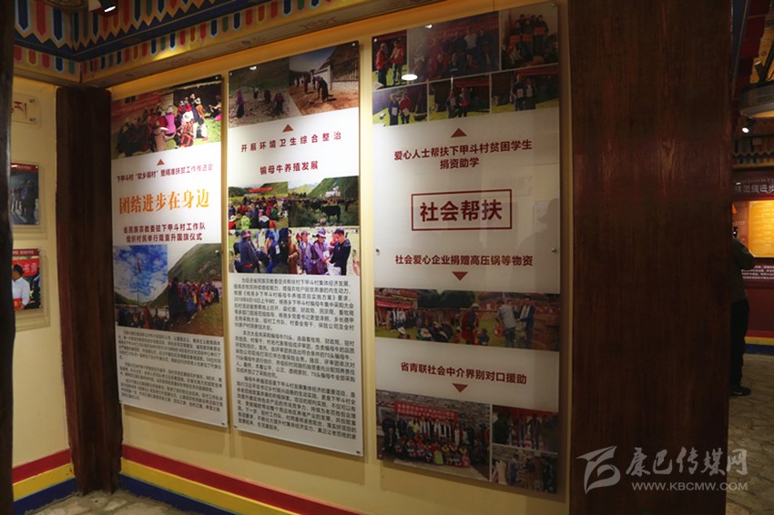 登初跳舞的民族團結(jié)文化廣場,是下甲斗村村民投工投勞所建,環(huán)顧四周,文化廣場無不彰顯著民族團結(jié)元素?!皩W有所教,報效祖國”“飲水思源,不忘初心”“同心合力,文化興盛”……在廣場正中的一幅畫中,數(shù)位漢族模樣的干部盤坐在地上,與周圍當?shù)夭刈迦罕姇痴勆鯕g。村支部書記那多說,這幾位都是精準扶貧期間,在村里擔任第一書記的畫像,“他們千里迢迢從省城來到下甲斗村對口支援,他們的情誼村民們感念不已,在建設(shè)廣場時,村民們一致要求畫上他們,讓大家永遠記住幫助過我們的人。”