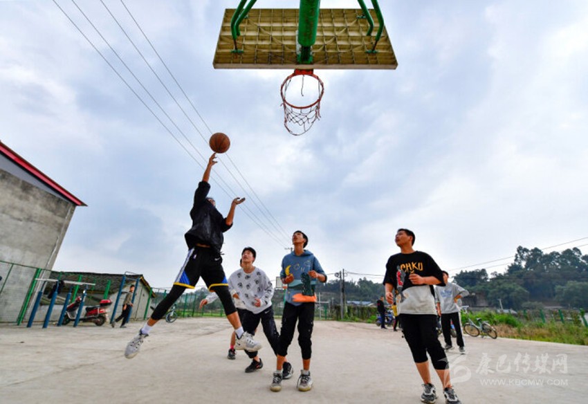 ? 東坡區(qū)松江鎮(zhèn)丁塘村村民正在村籃球場(chǎng)上進(jìn)行一場(chǎng)3對(duì)3對(duì)抗賽。丨眉山日?qǐng)?bào)全媒體記者 楊槐 攝