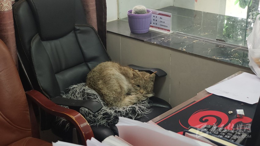 呆萌的“荒漠貓”在辦公區(qū)小憩。