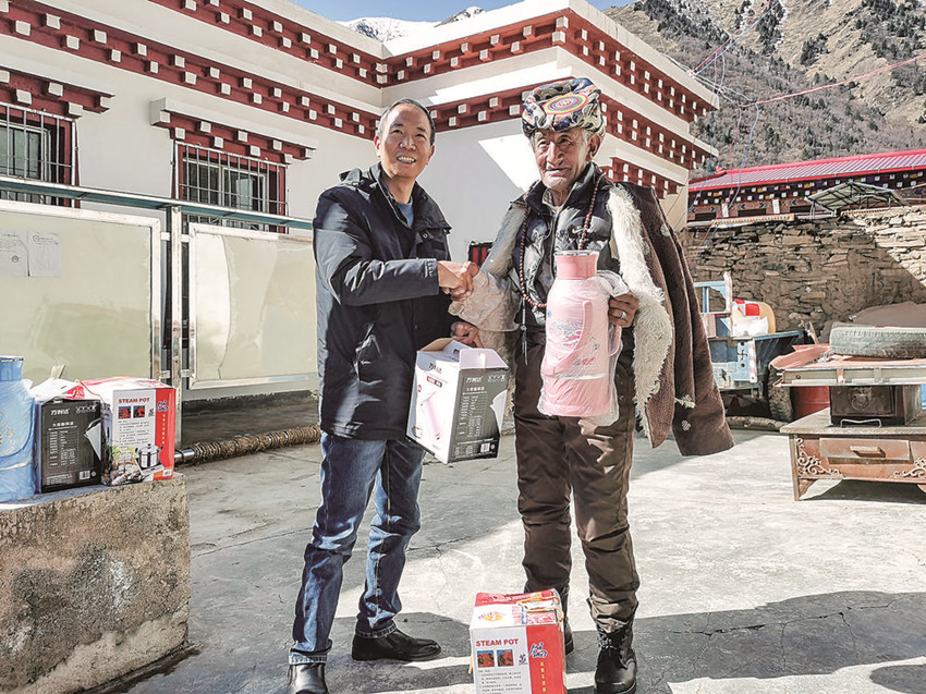 戴林為自己的結對“親人”送慰問品。