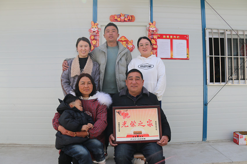 吃晚飯前,甘啟均叫上家里6口人,在板房門(mén)前拍了一張“全家福”,照片中三代同框緊緊相偎,“光榮之家”的牌匾格外亮眼。