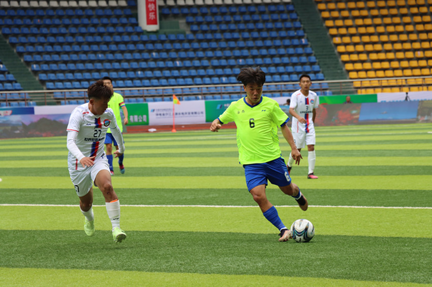 上午9時(shí)30分,第一場(chǎng)由B組的云南迪慶隊(duì)對(duì)陣青海海西隊(duì)。比賽伊始,雙方隊(duì)員來(lái)回爭(zhēng)球,不斷切換進(jìn)攻與防守陣型,比賽至第47分鐘,云南迪慶隊(duì)11號(hào)隊(duì)員破門進(jìn)球,上半場(chǎng)以1:0結(jié)束比賽。比賽下半場(chǎng),雙方隊(duì)員你追我趕,不斷爭(zhēng)搶控球權(quán)。比賽至69分鐘,云南迪慶隊(duì)再次進(jìn)球,將比分?jǐn)U大到2:0。青海海西迅速調(diào)整狀態(tài)并發(fā)起強(qiáng)勢(shì)進(jìn)攻,試圖扳平比分,不斷嘗試進(jìn)入云南迪慶隊(duì)的禁區(qū),給對(duì)方帶來(lái)了巨大的壓力。比賽至86分鐘,青海海西22號(hào)隊(duì)員獲得一次點(diǎn)球機(jī)會(huì),最終以2:1結(jié)束比賽。