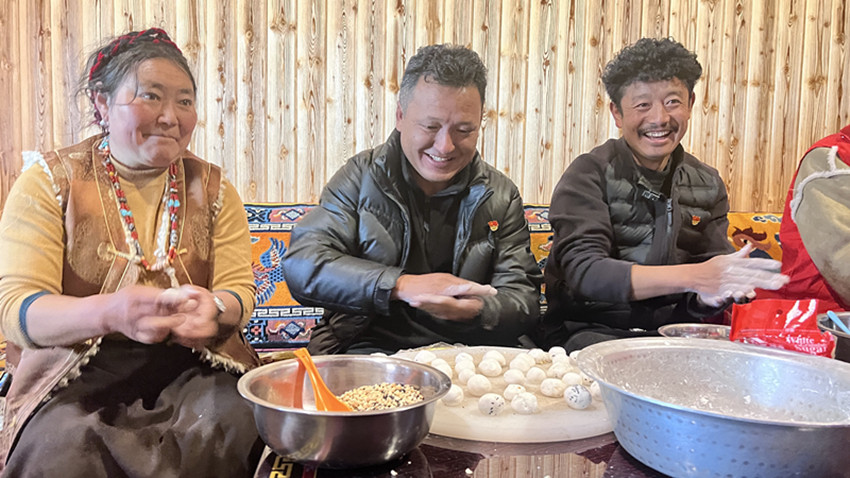 這邊拉著家常,那邊一碗碗熱氣騰騰的湯圓端上了桌。席間,朱文秀品嘗著這象征“團(tuán)圓”的湯圓,還不忘關(guān)心著格絨家的三女兒甲初拉姆的學(xué)習(xí)、就業(yè)意愿等情況,勉勵她要好好學(xué)習(xí),將來更好地建設(shè)祖國。
