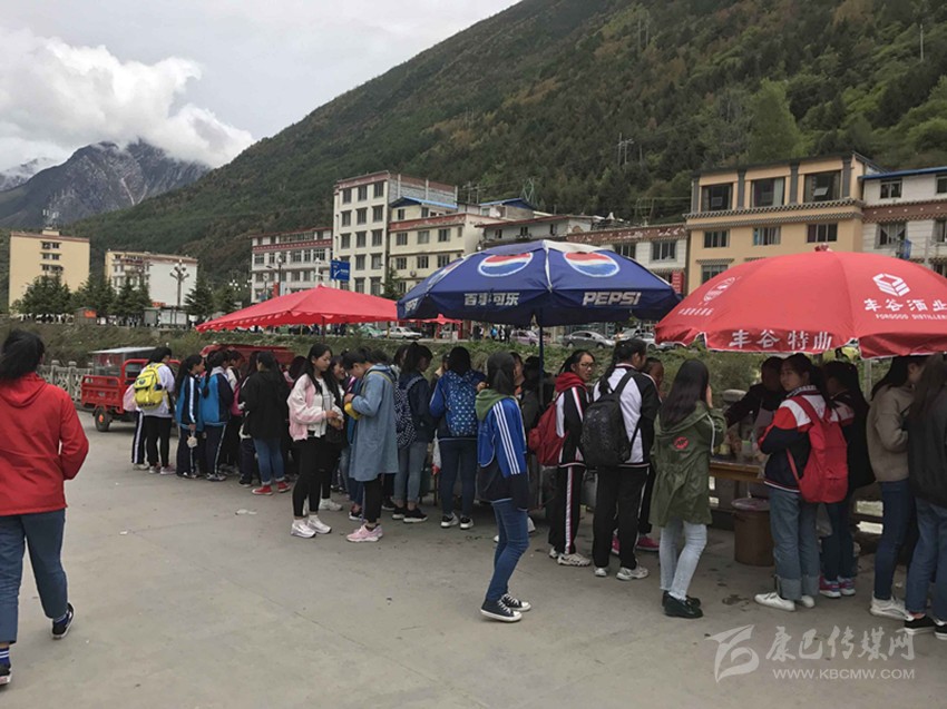 那么真實情況到底如何呢?7日,記者專門來到康定中學走訪調查。記者搭乘出租車前往學校,途中司機卻回應“康中校門口那一段全是賣炸洋芋、炸雞腿的攤攤,車子根本開不過去,只能提前下車?!碑斢浾卟叫羞^橋到達校門口路段時,雜亂無序而又異常喧鬧的場面立刻映入眼簾。約摸十來家燒烤油炸“流動攤點”上,商販們手中的烤具上下翻飛,幾十名身著“康定中學”校服的學生駐足其間,從校門出入的車輛不斷鳴笛避讓。烤面筋、炸土豆、烤雞腿,濃濃的油煙、各種調料混合的氣味、滋滋的油炸聲……儼然一副“美食街”的火爆景象。