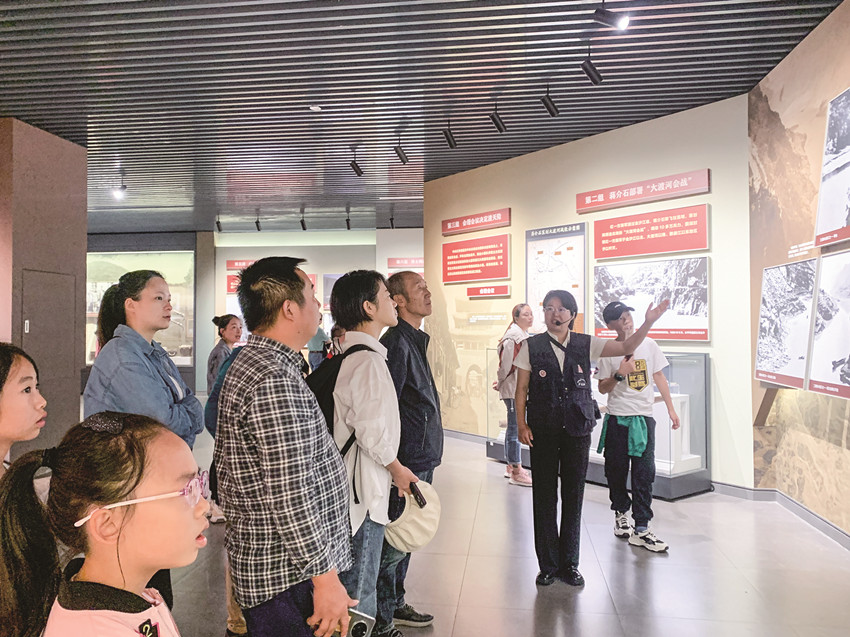 “國(guó)慶節(jié)的心情若有顏色,一定是紅色。瀘定作為一座紅色之城,擁有數(shù)不勝數(shù)的珍貴‘紅色寶藏’,這里有無(wú)數(shù)的紅色故事可以講述,也有光榮的革命精神在悠久傳承。”正在瀘定橋東橋頭排隊(duì)檢票的重慶游客李先生表示,他們一家?guī)е谏闲W(xué)六年級(jí)的兒子利用“雙節(jié)”假期,到瀘定體驗(yàn)“紅色文化研學(xué)”線路,從書(shū)本到現(xiàn)實(shí),走上瀘定橋接受紅色教育,感受長(zhǎng)征精神。
