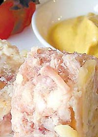 彝族風味肉凍,這是彝族地區(qū)較為講究的一種菜肴。它采用豬蹄和肘子制做而成。一般做法是將肉放入鍋內(nèi)煮軟后撈起,剔去骨頭并將肉宰碎,放上木姜、生姜、花椒等佐料,有的還放橘子皮,或雞蛋之類的東西,然后放回鍋里煮上一陣,以便使佐料滲入肉中,最后放入木缽內(nèi),放上一夜即成。肉凍柔軟可口,香味獨特,是彝族十分喜愛的一種食品。