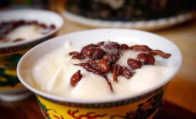 吃完酥油果子,再來(lái)一碗人參果藏式酸奶吧。酸奶是牦牛奶發(fā)酵而成,而人參果則是高原的寶貝之一,營(yíng)養(yǎng)價(jià)值維生素含量極高。人生果是甜甜的,酸奶是極酸的。搭配在一起是清爽又可口的下午茶不二選擇。