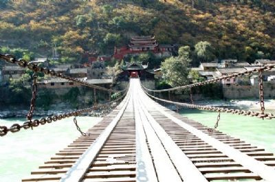 瀘定橋簡介瀘定橋坐落在瀘定縣城大渡河上,為全國重點(diǎn)文物保護(hù)單位。該橋始建于清康熙44年,建成于45年(1706年)。康熙御筆題定“瀘定橋”,并立御碑于橋頭。